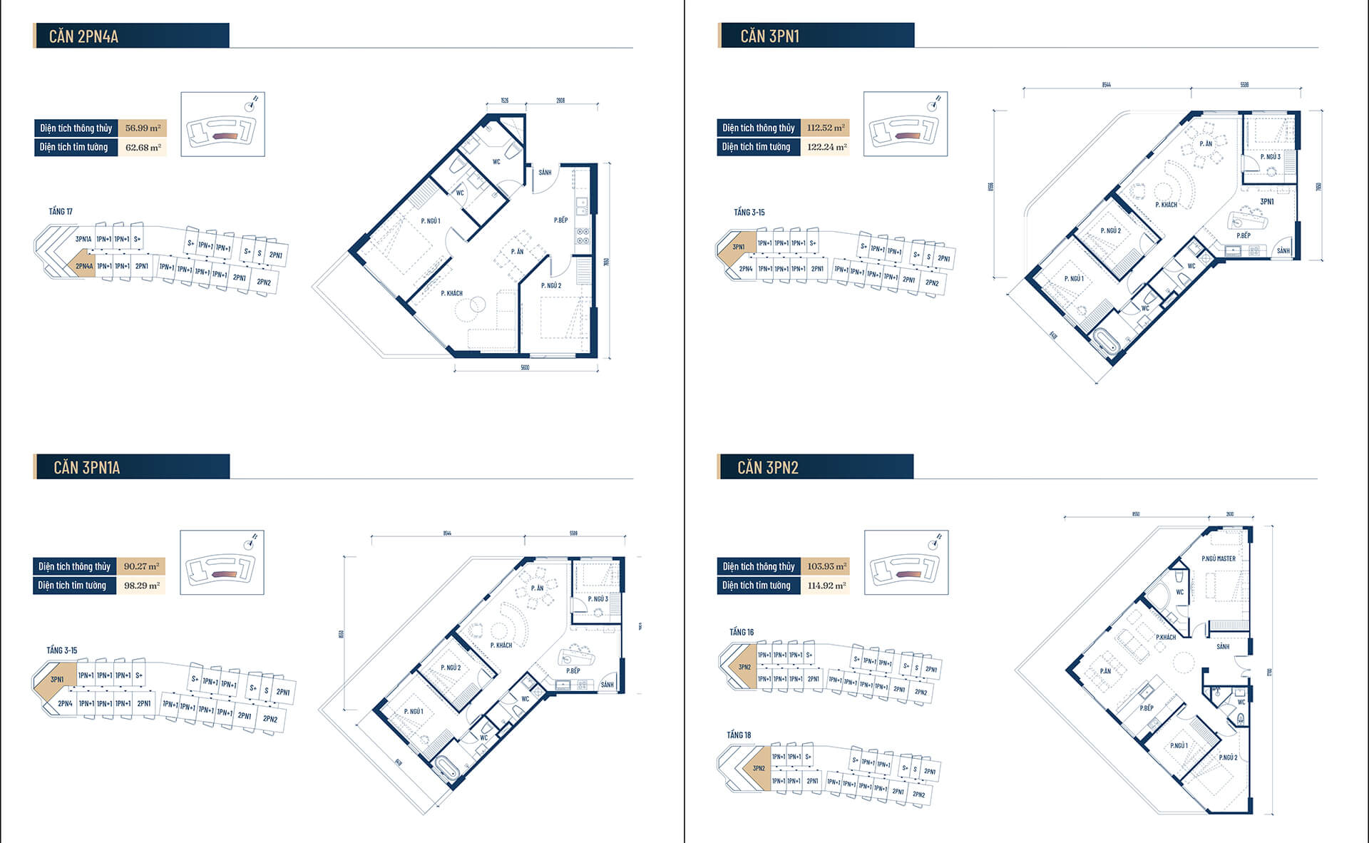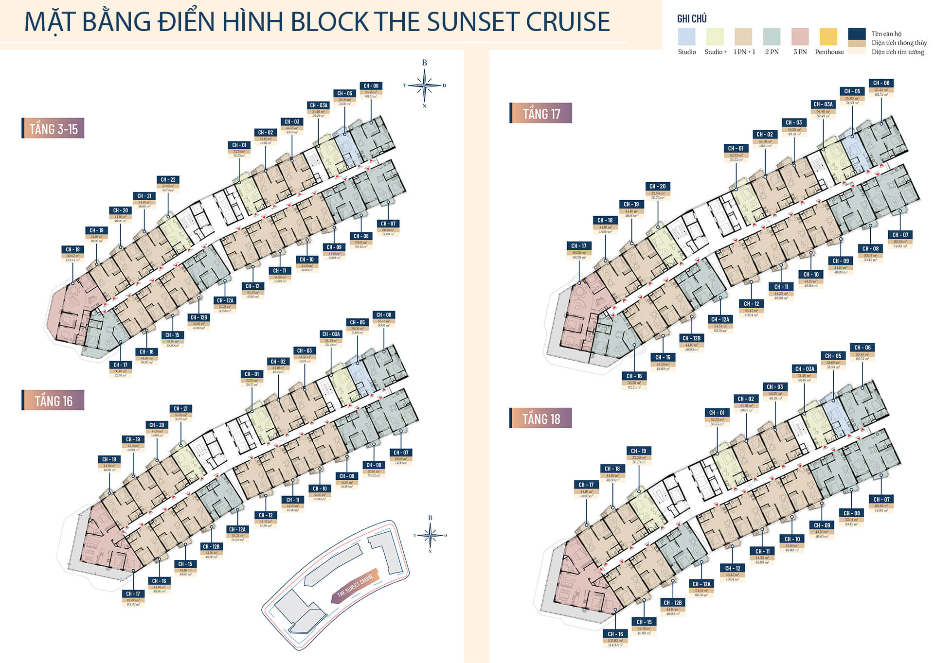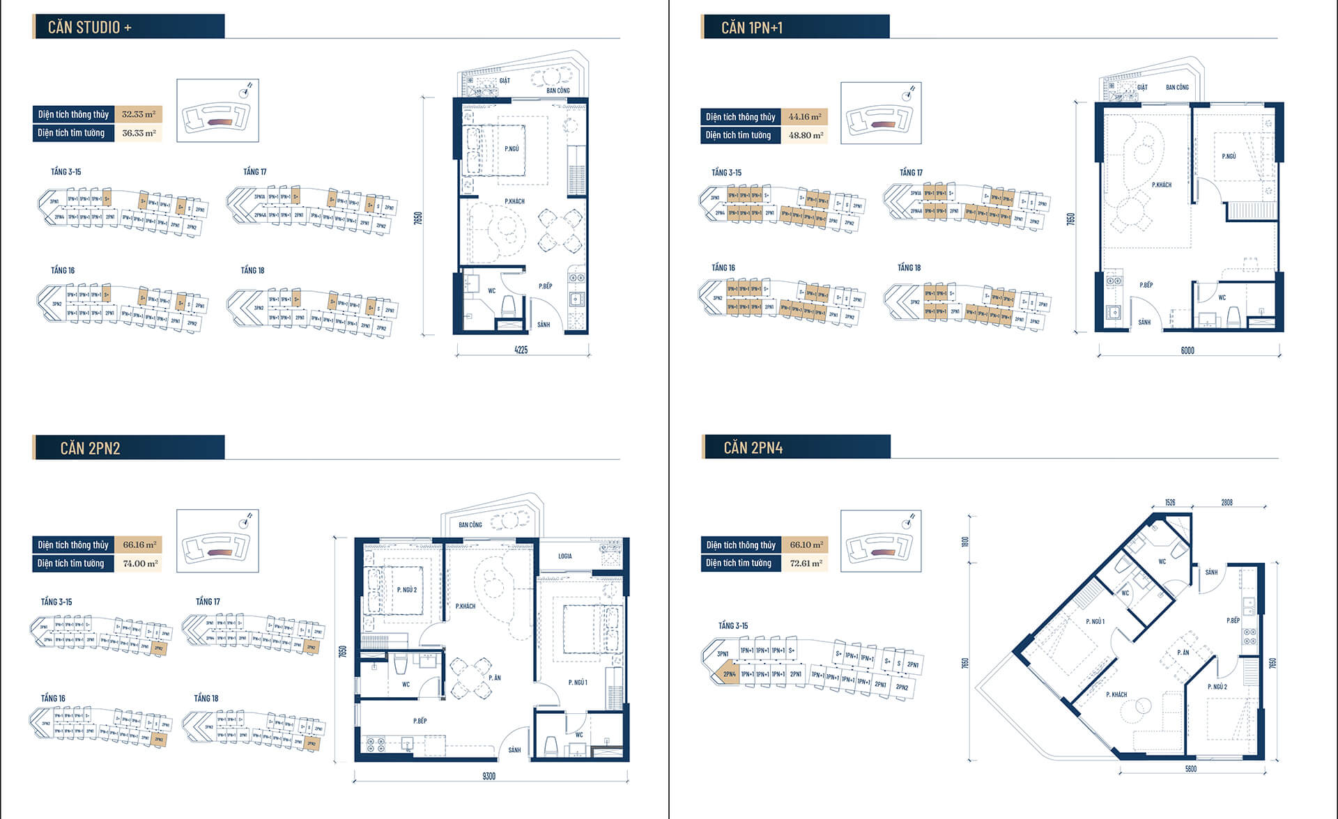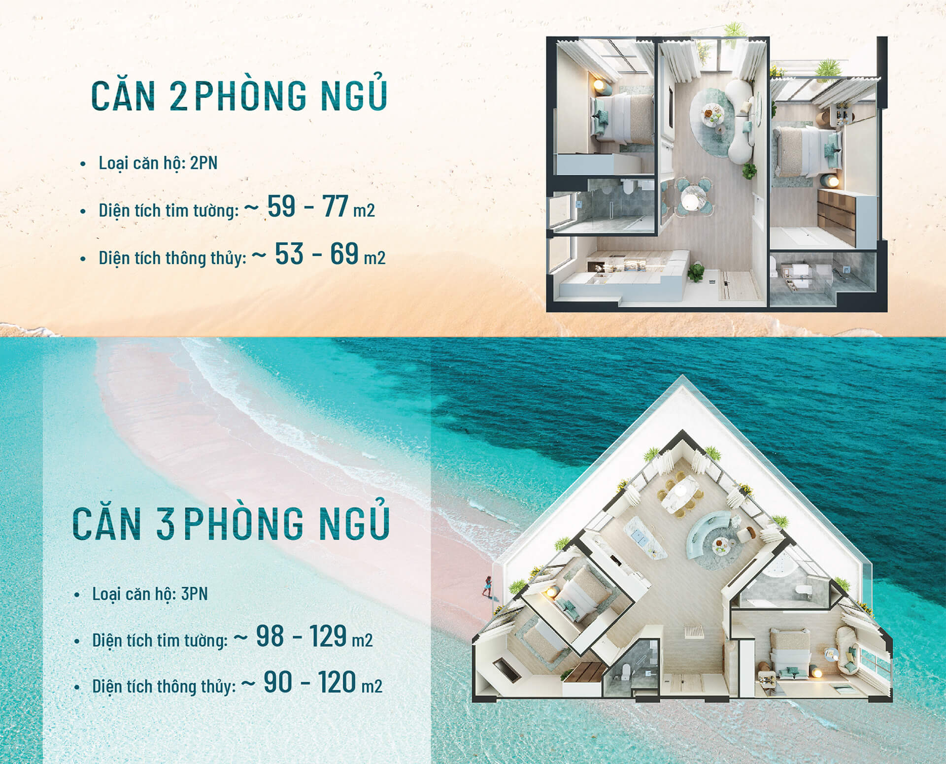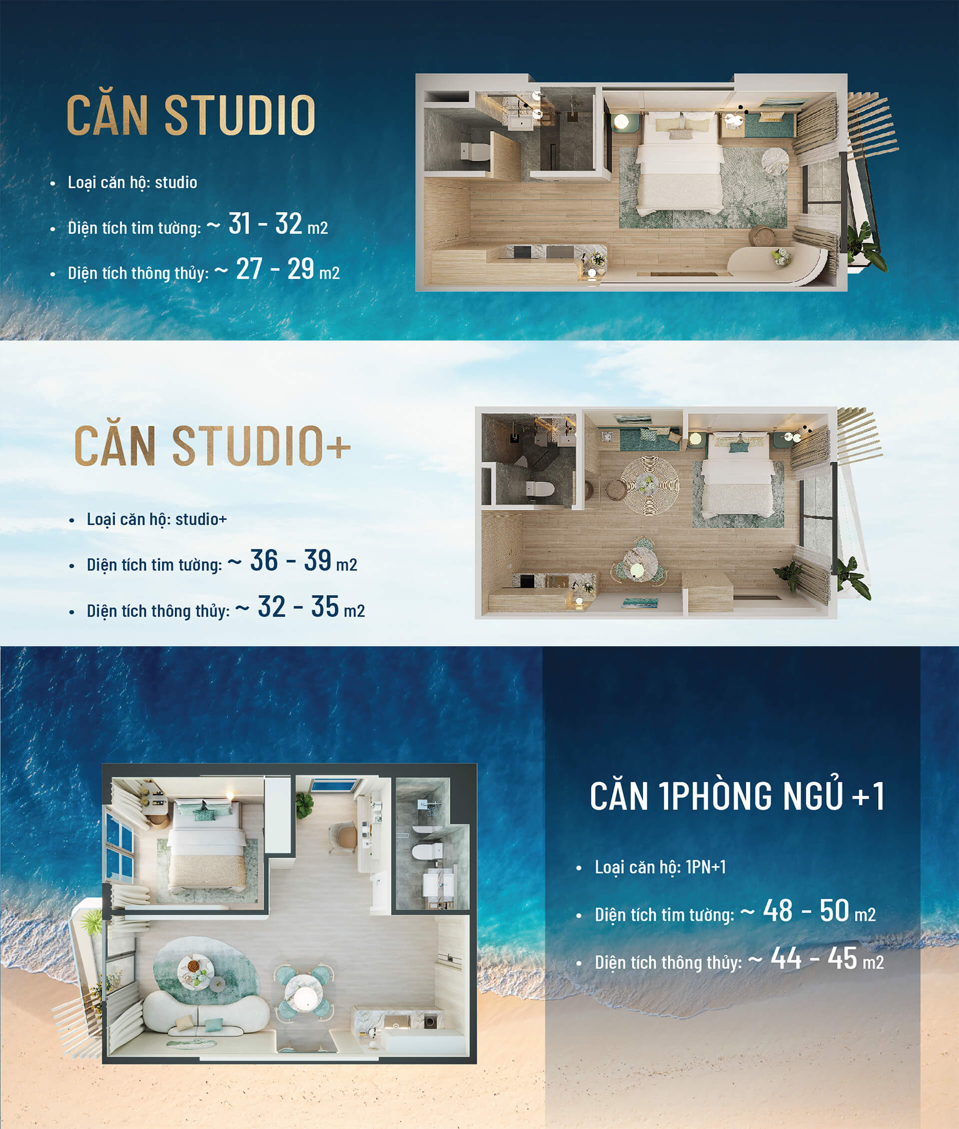 - Các loại căn hộ: Studio, Studio+, 1 PN +1, 2 PN, 3 PN – thiết kế theo từng “màu sắc” cảm hứng: hồng (Pink Pearl), trắng (White Pearl), vàng ngọc trai (Gold Pearl), đen (Black Pearl).