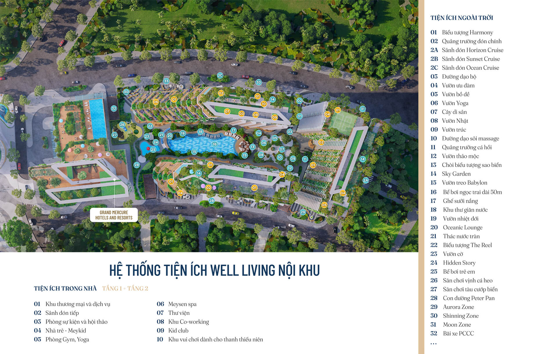- Qui mô: 3 tòa tháp căn hộ + 1 tòa khách sạn 5 sao (Grand Mercure) trong cùng khu.
