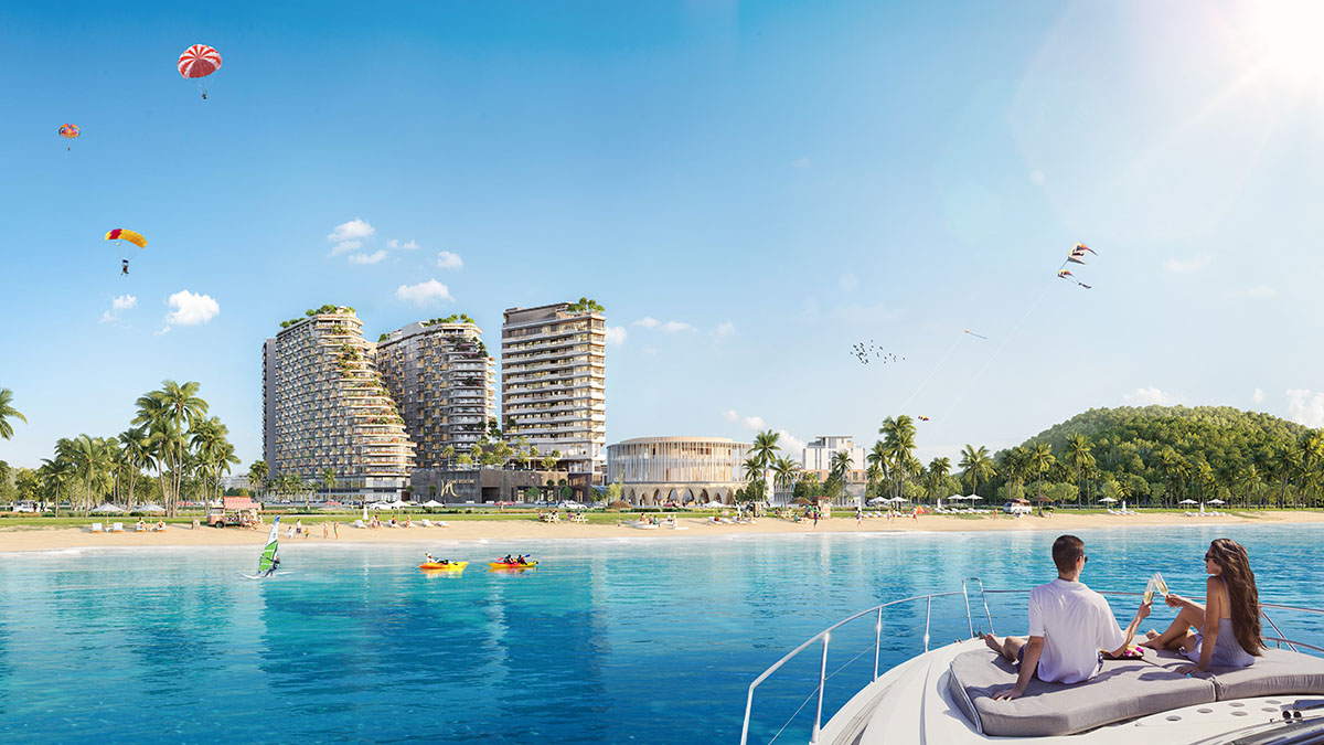 Dự án mang phong cách “du thuyền” – lấy cảm hứng từ hình ảnh một con tàu vươn mình ra đại dương, kết hợp với thiết kế “biển – trời – ánh hoàng hôn” để tạo nên không gian sống nghỉ dưỡng nhưng vẫn đậm nét phong cách sống hiện đại và đẳng cấp. Điểm nổi bật là sản phẩm có pháp lý sở hữu lâu dài, một điểm thu hút mạnh mẽ khi nói tới bất động sản biển đảo.